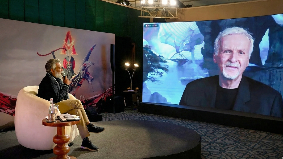అవతార్ 3 ఇండియా ప్రమోషన్స్లో భాగంగా, జేమ్స్ కామెరాన్ దర్శకధీరుడు ఎస్.ఎస్. రాజమౌళి (SS Rajamouli) తో ఒక స్పెషల్ వీడియో ఇంటర్వ్యూ నిర్వహించారు. ఈ సంభాషణ ఇప్పుడు సోషల్ మీడియాలో వైరల్గా మారింది. ఈ సందర్భంగా రాజమౌళి మాట్లాడుతూ, “అవతార్ సినిమా చూస్తున్నప్పుడు నేను థియేటర్లో ఒక పిల్లవాడిలా మైమరిచిపోయాను. హైదరాబాద్ ఐమాక్స్ (Hyderabad IMAX) లో అవతార్ సినిమా దాదాపు ఒక సంవత్సరం పాటు ప్రదర్శించబడింది,” అని జేమ్స్ కామెరాన్కు తెలిపారు. అవతార్ ఫ్రాంచైజీ బిగ్ స్క్రీన్ అనుభవాలకు ఒక బెంచ్మార్క్ అని కూడా ఆయన ప్రశంసించారు.