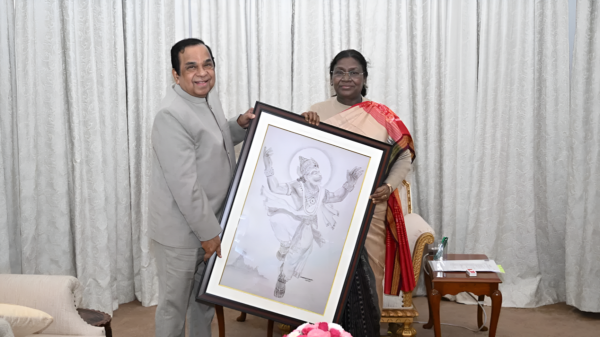 టాలీవుడ్ హాస్యబ్రహ్మ బ్రహ్మానందం (Brahmanandam) భారత రాష్ట్రపతి ద్రౌపది ముర్ము (Droupadi Murmu)ను మర్యాదపూర్వకంగా కలిశారు. ఆదివారం హైదరాబాద్ (Hyderabad)లోని బొల్లారం రాష్ట్రపతి నిలయం (Rashtrapati Nilayam, Bolaram)లో ఈ భేటీ జరిగింది. గ్లోబల్ కమెడియన్గా పేరొందిన బ్రహ్మానందం రాష్ట్రపతిని శాలువతో సత్కరించి గౌరవం తెలియజేశారు. ఈ సందర్భంగా తాను స్వయంగా చిత్రించిన ఆంజనేయ స్వామి (Anjaneya Swamy) చిత్రాన్ని రాష్ట్రపతికి అందించడం ప్రత్యేక ఆకర్షణగా నిలిచింది.