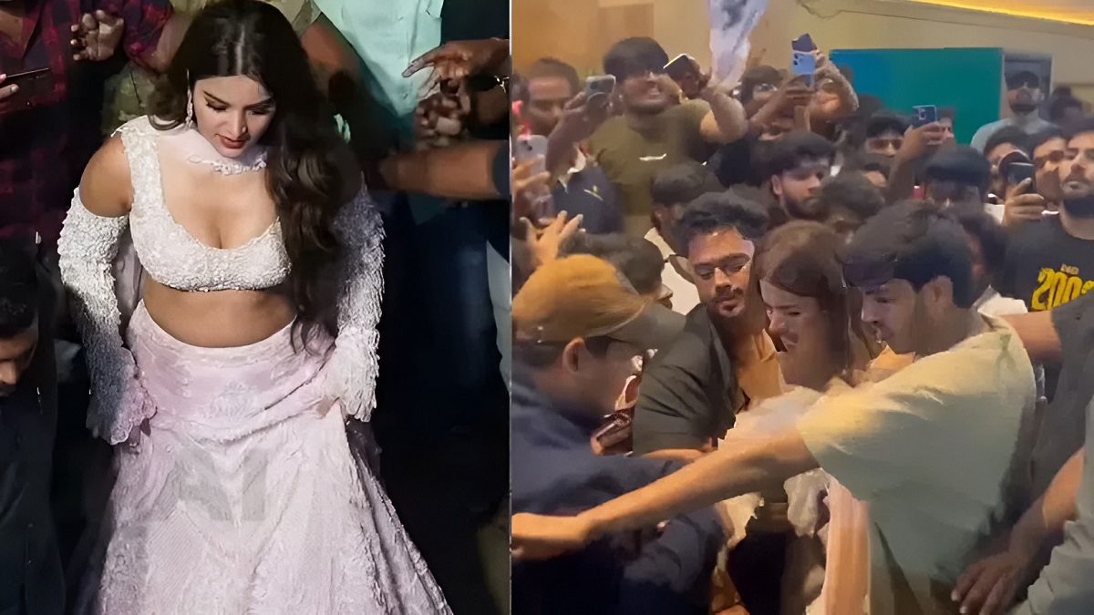హైదరాబాద్లోని ఒక ప్రైవేట్ మాల్లో నిర్వహించిన ‘సహానా సహానా’ పాట విడుదల ఈవెంట్కు నిధి అగర్వాల్ హాజరయ్యారు. అయితే కార్యక్రమానికి ఊహించిన దానికంటే భారీ సంఖ్యలో అభిమానులు తరలిరావడంతో పరిస్థితి ఒక్కసారిగా అదుపు తప్పింది. నిధి అగర్వాల్తో ఫోటోలు దిగేందుకు అభిమానులు ఒకేసారి ఎగబడటంతో గందరగోళం నెలకొంది. ఈ క్రమంలో కొంతమంది ఆమెతో అసభ్యకరంగా, దురుసుగా ప్రవర్తించారని సమాచారం. సరైన భద్రతా ఏర్పాట్లు లేకపోవడమే ఈ పరిస్థితికి కారణమని పలువురు విమర్శిస్తున్నారు.