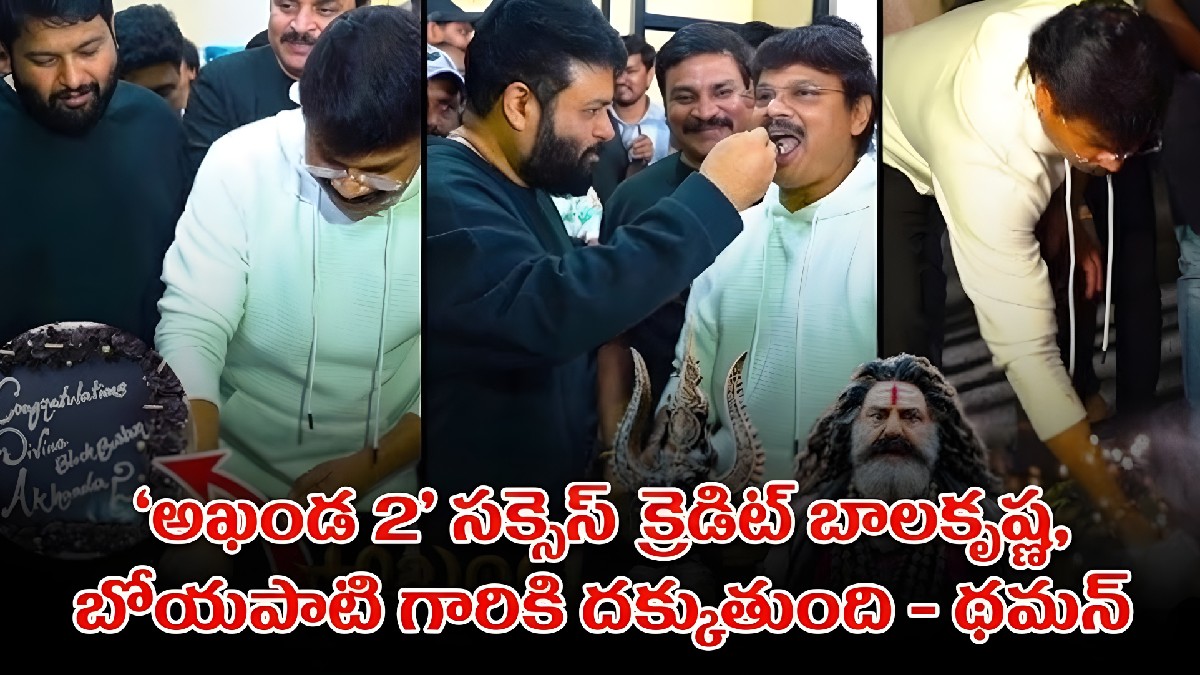 ఈ సినిమా తన జీవితానికి బ్యాలెన్స్ ఇచ్చిందని తమన్ భావోద్వేగంగా చెప్పారు. గుడికి వెళ్లినప్పుడు వచ్చే మనశ్శాంతి (Peace of Mind) లాంటి అనుభూతిని అఖండ తనకు ఇచ్చిందన్నారు. రిలీజ్ చివరి నిమిషంలో వాయిదా (Postponement) పడినప్పుడు అభిమానుల బాధే తనను ఎక్కువగా కలచివేసిందని, కానీ సినిమా బలంపై పూర్తి నమ్మకం ఉండేదని తెలిపారు. “సక్సెస్ వచ్చినప్పుడు హేట్ (Hate) అవసరం లేదు” అనే తన మాటలు సోషల్ మీడియాలో వైరల్గా మారాయి.